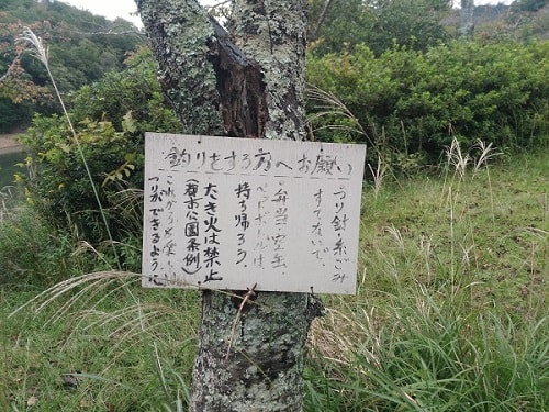 少し進むと「釣りをする人はマナーを守って下さい」という看板がありました。