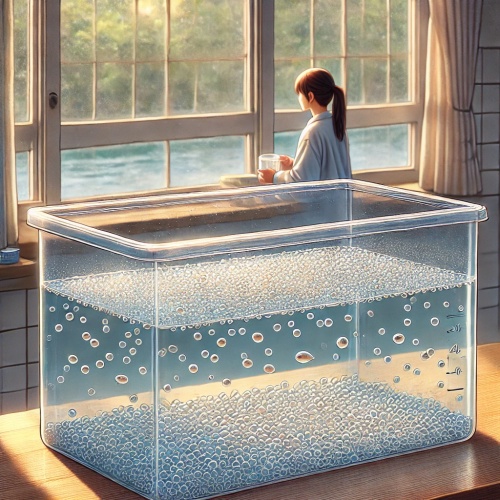 まず容器は、500ml〜2L程度の水が入るプラスチックカップやタッパーがおすすめです。開口部が広く、空気と水面の接触面が多い形状のものを選ぶと、酸素がよく溶け込み、卵の発育がスムーズになります。100円ショップで手に入るプリンカップなどでも十分対応できます。
