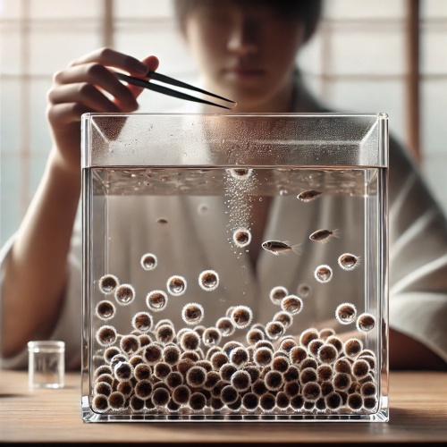 カビた卵の見た目は、表面に白くふわふわした糸状のものが付着していたり、全体が白く濁っていたりするのが特徴です。このような卵を見つけたら、まずはピンセットでつまんで慎重に取り出します。水中で強く引っ張ると他の卵にダメージを与える可能性があるため、静かに持ち上げるようにしてください。