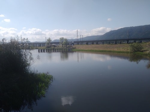 たまたま近くに琵琶湖に流れ込んでいる川があるのですが、橋の上から覗くと物凄い数の魚影がみえたので川で釣ることにしました。